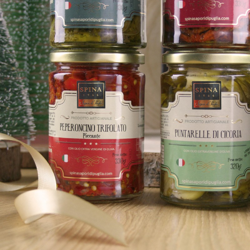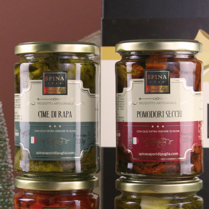 Cime di rapa 330 g Pomodori secchi 330 g Peperoncino Trifolato Piccante 330 g Puntarelle di Cicoria 330 g Melanzane a filetti 330 g Orecchiette 500 g