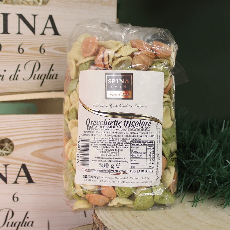 Funghi cardoncelli 330 g Crema di cime di rapa 190 g Crema carciofi e rucola 190 g Orecchiette Tricolore 500 g Piatto Piano - Ceramiche di Grottaglie
