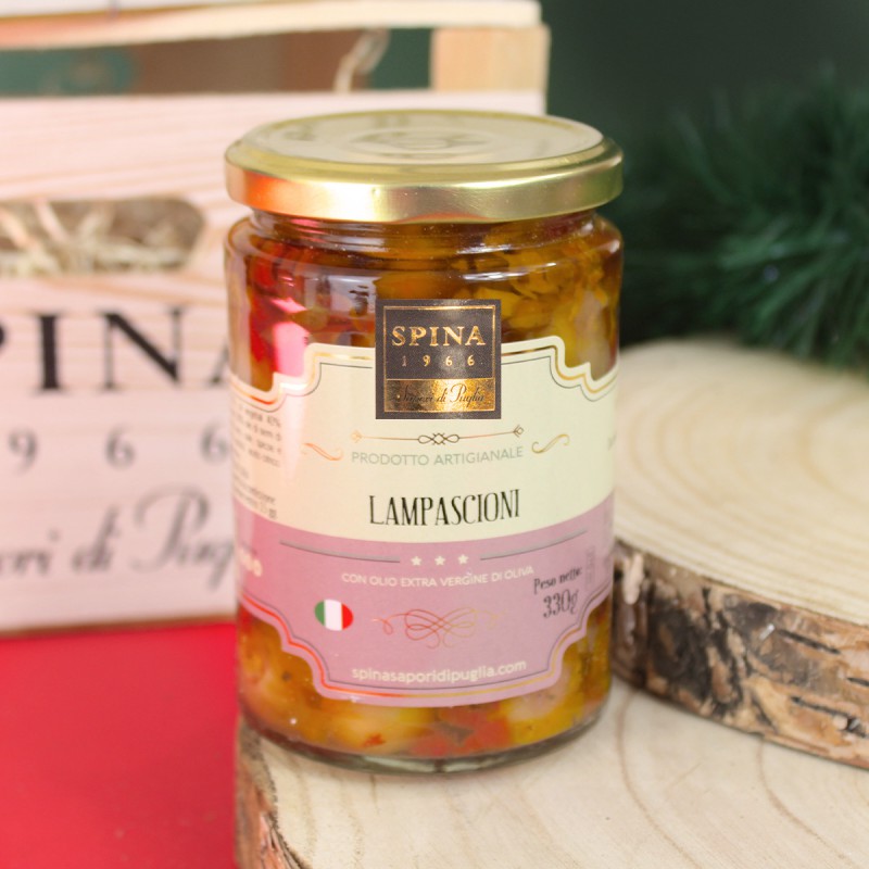 Lampascioni 330 g Cime di rapa 330 g Melanzane a filetti 330 g Puntarelle di cicoria 330 g Peperoncino Trifolato Piccante 330 g Antipasto capriccioso 330 g